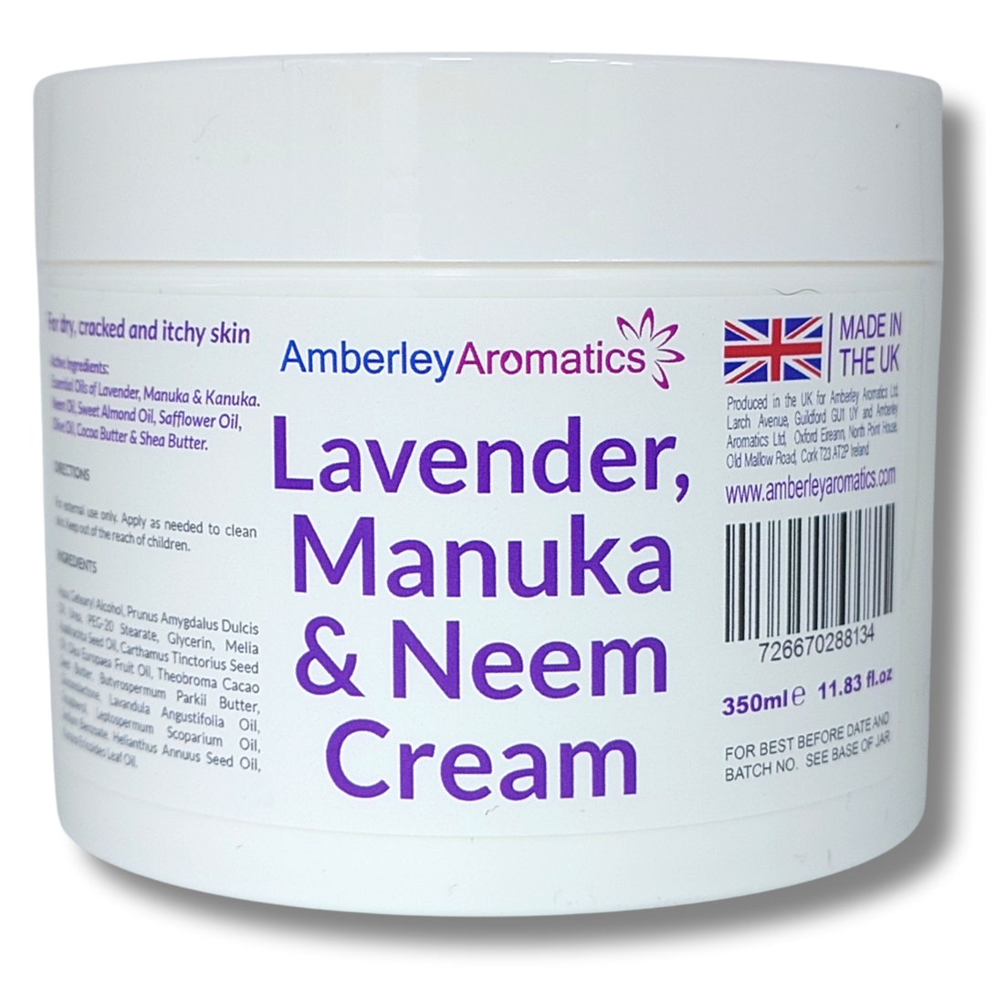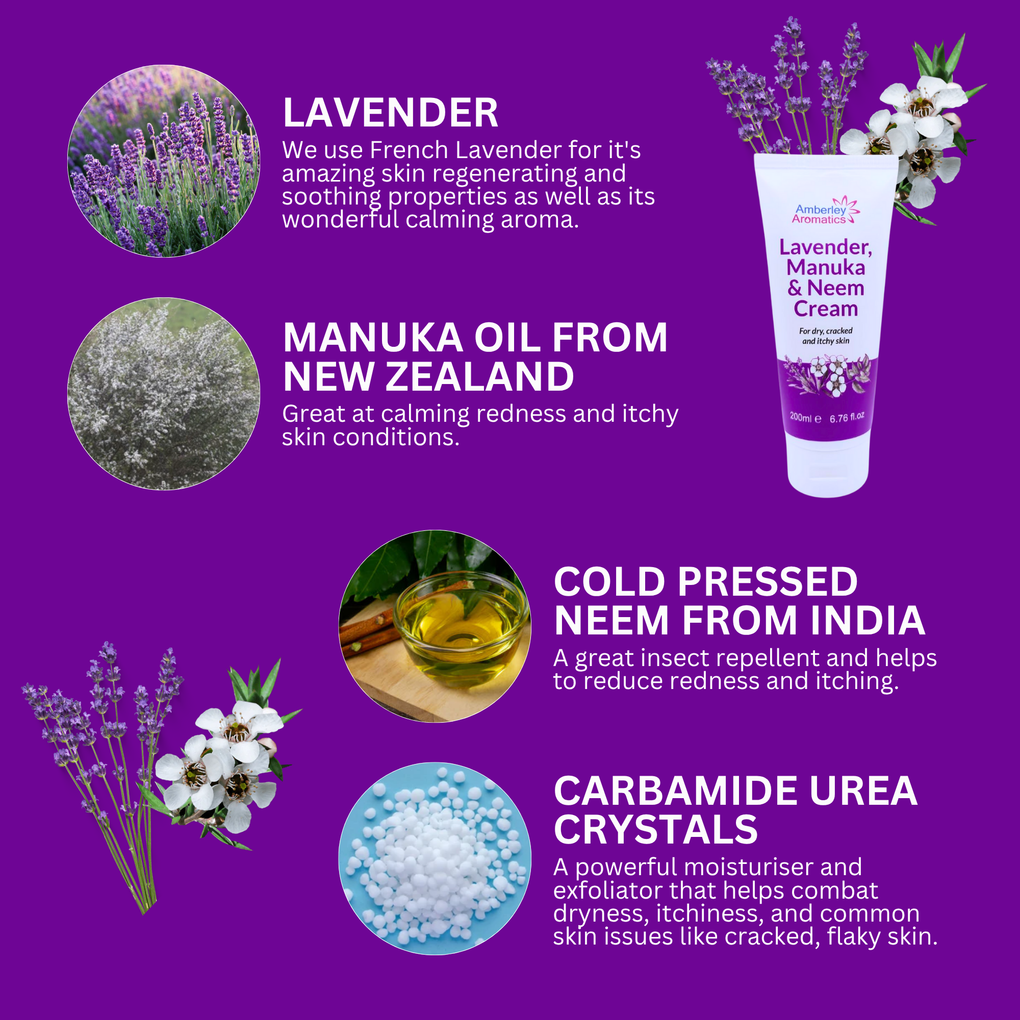 Lavender, Manuka & Neem Cream - Suitable for Sensitive Skin. Antibacterial, for Itchy, Sore & Dry Cracked Skin